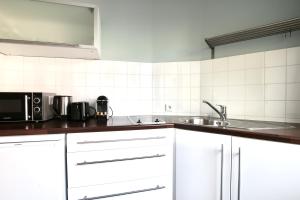L’appartement dispose d’une entrée privée avec une chambre et un coin salon pour se détendre. La cuisine entièrement équipée comprend une plaque de cuisson, un réfrigérateur, un micro-ondes, un grille-pain et une machine à café ainsi qu’un coin cuisine complet avec bouilloire électrique et chaise haute pour enfants. Une salle de bains privative est dotée d’une douche ou d’une baignoire au choix ainsi que d’un sèche-cheveux.