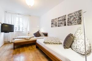 El alojamiento consta de dos dormitorios y un baño equipado con bañera y secador de pelo. La cocina americana está totalmente equipada con placa vitrocerámica, frigorífico, lavavajillas y utensilios básicos. Entre las comodidades adicionales se incluyen calefacción, suelos combinados de baldosa y madera maciza, almohadas tanto plumas como sintéticas, toallas, ropa de cama, además del equipamiento para planchar que incluye plancha y tabla.