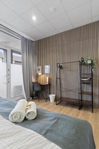 Este apartamento dispone de dos dormitorios independientes y un baño equipado con ducha o bañera-ducha combinada, secador de pelo y artículos de aseo gratuitos como champú y jabón corporal. Los huéspedes pueden disfrutar en total de tres camas junto con comodidades como ropa de cama, toallas, almohadas sintéticas no plumón, armario ropero, calefacción, plancha con tabla e incluso prensa-pantalones. La sala cuenta con televisión pantalla plana con canales vía satélite y servicios en streaming, además incluye zona sofá-cama para sentarse junto al escritorio.