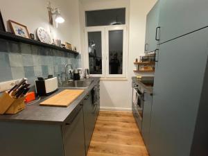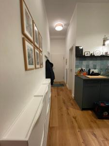 В этом жилье имеется одна спальня с паркетным полом, раскладной диван-кроватью, подушками из пера и синтетическими наполнителями, шкафом для одежды, рабочим столом и отоплением для комфортного пребывания. Мини-кухня полностью оборудована духовкой, плитой, холодильником, посудомоечной машиной, тостером и кофемашиной с принадлежностями для приготовления чая и кофе, здесь также есть кухонная утварь и обеденный стол.