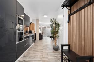 Do dyspozycji gości jest osobna sypialnia z dwoma łóżkami oraz dwa salony wyposażone w dźwiękoszczelne ściany. W pełni wyposażony aneks kuchenny zawiera nowoczesne urządzenia: piekarnik, płytę grzewczą, lodówkę, zmywarkę, mikrofalówkę, toster oraz zestaw do przygotowywania kawy i herbaty. Łazienka posiada prysznic typu walk-in bez progów oraz bezpłatne kosmetyki takie jak szampon i mydło do ciała.