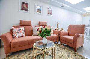 Для комфорта гостей предусмотрены индивидуальное управление кондиционированием воздуха в каждой комнате, полы из плитки или мрамора, сейф, гладильные принадлежности с утюгом и гладильной доской, полотенца и постельное белье с не пуховыми подушками, стиральная машина с сушилкой для одежды, раскладной диван вместе с зоной отдыха и рабочим столом, телевизор с плоским экраном со спутниковыми каналами плюс поддержка Blu-Ray плеера и DVD-плеера, бесплатный Wi-Fi по всей квартире, наличие адаптера для розеток возле кровати.